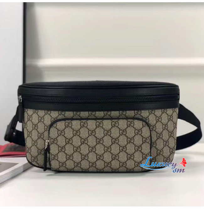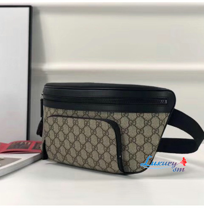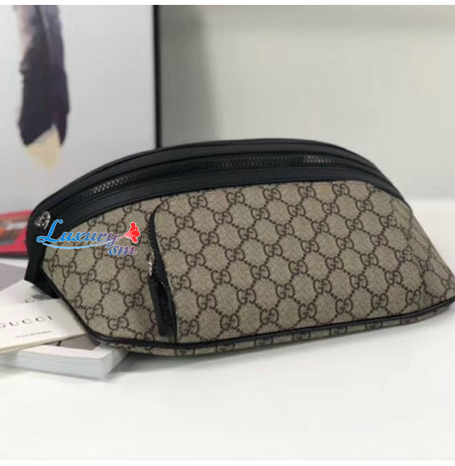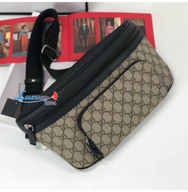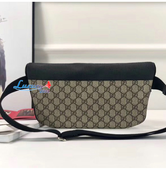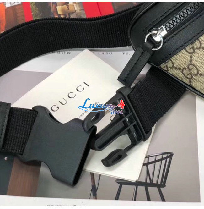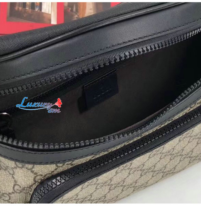 -앞면에 지퍼 포켓/조절 가능한 블랙 나일론 스트랩 플라스틱 버클 잠금장치/에보니GG수프림 캔버스.