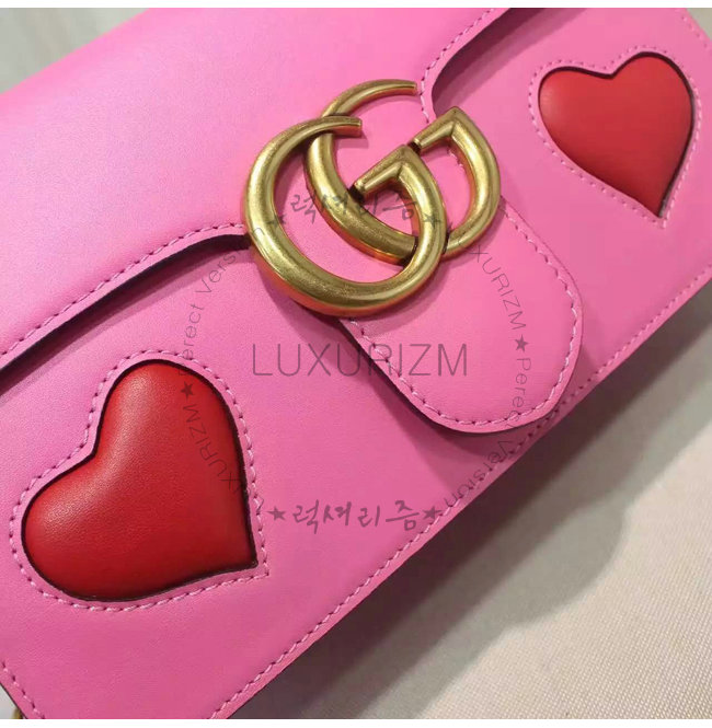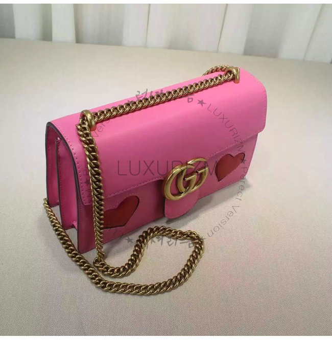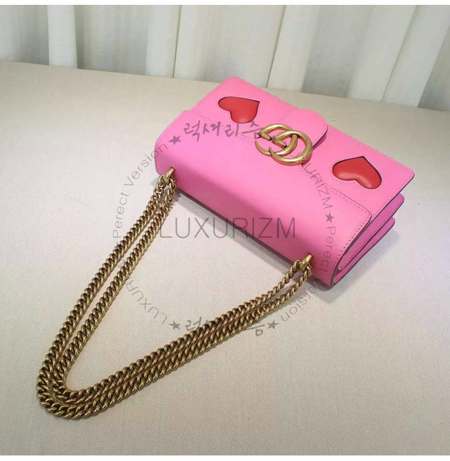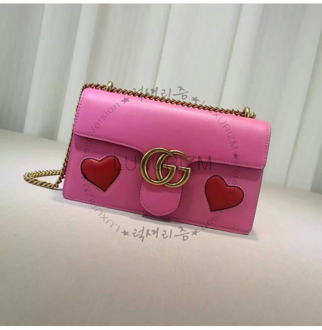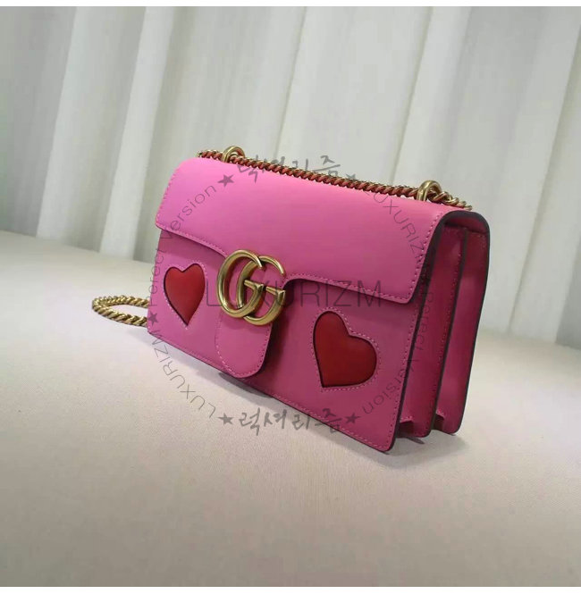 [스페셜오더]GUCCI-431777 5665 GG 구찌 마몽 미디엄 사이즈 스트럭처드 체인 숄더백 핑크 레드 하트