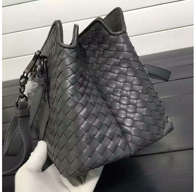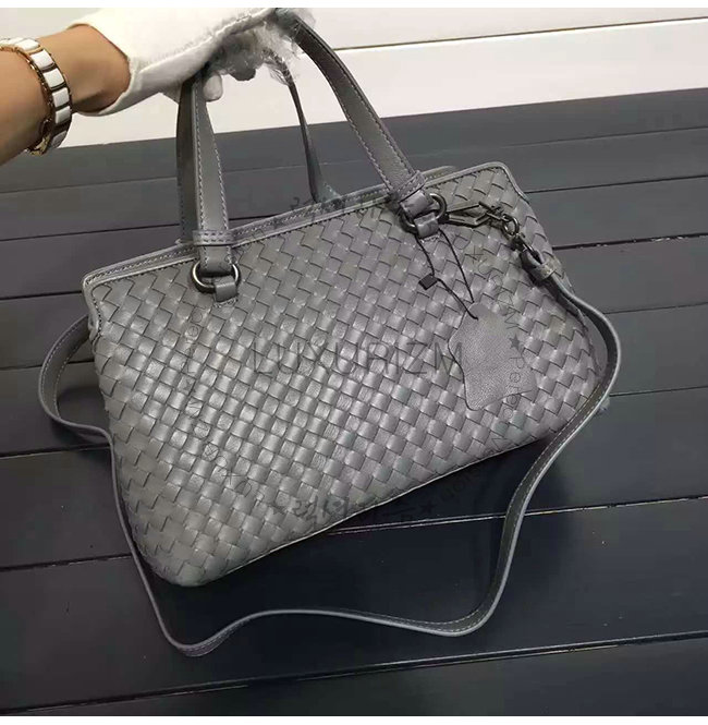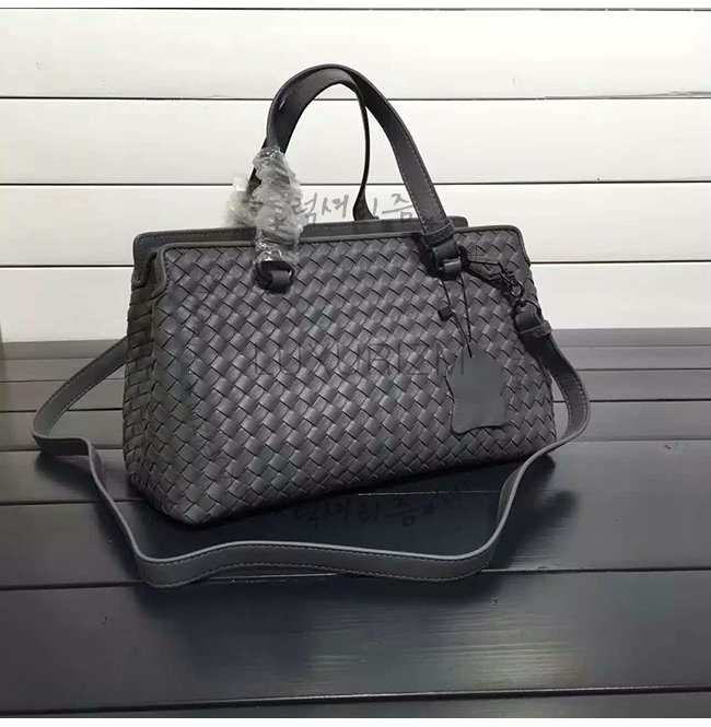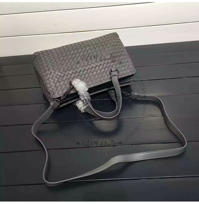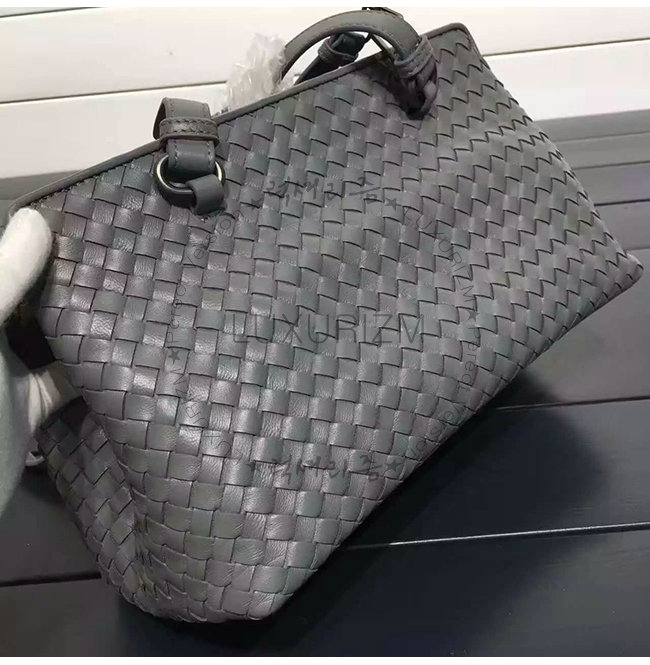 BOTTEGA VENETA-2108656 보테가베네타 뉴 라이트 그레이 인트레치아토 나파 미디엄 탑 핸들 백