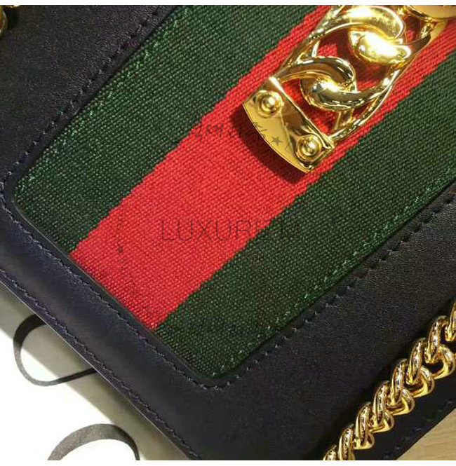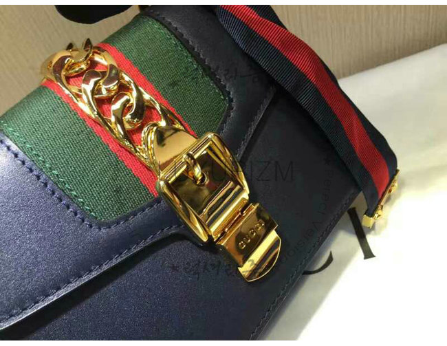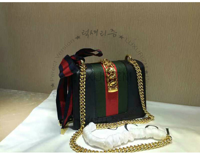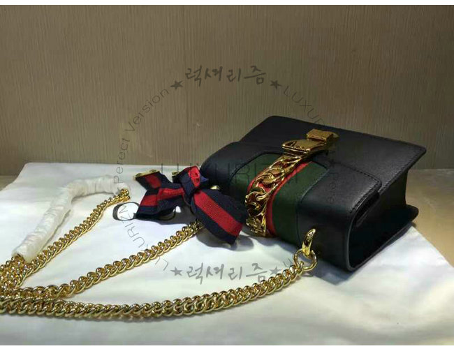 #명품 구찌 레플리카 쇼핑몰 스페셜오더GUCCI-431666 8638구찌Sylvie가죽 나일론web리본 장식 미니 체인백블랙.