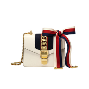 [스페셜오더]GUCCI-431666 8605 구찌 Sylvie 가죽 나일론 web 리본 장식 미니 체인백 화이트