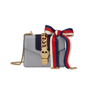 [스페셜오더]GUCCI-431666 1761 구찌 Sylvie 가죽 나일론 web 리본 장식 미니 체인백 그레이