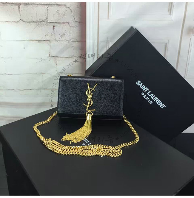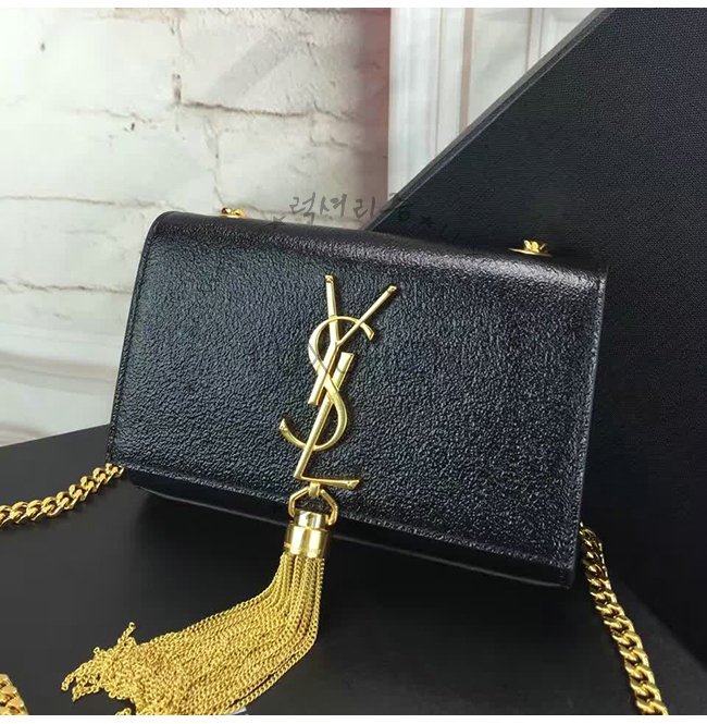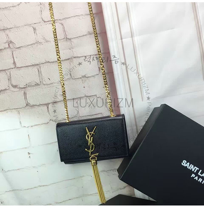 #홍콩명품 럭셔리즘 스페셜오더SAINT LAURENT-생 로랑 블랙 금장 가죽 클래식 스몰 모노그램 생 로랑 테슬 사첼백.