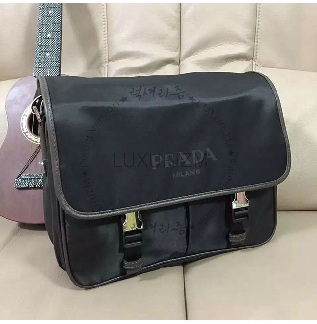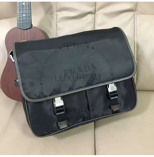 PRADA-2VD769/VA0768 프라다 사피아노 가죽 트림 나일론 플랩 메신져 백 블랙