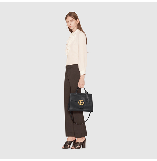 GG 마몽 미니 사이즈 스트럭처드 가죽 탑핸들백