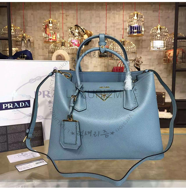 [스페셜오더]PRADA-1BG775 프라다 사피아노 더블 가죽 핸들 토트백 스카이블루