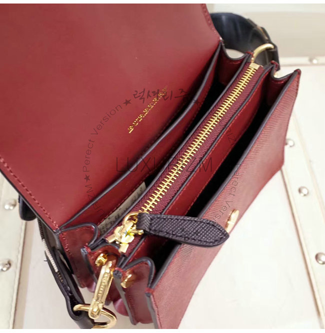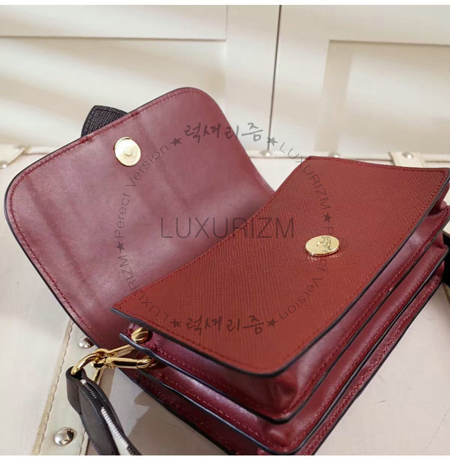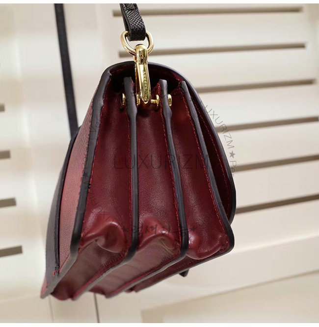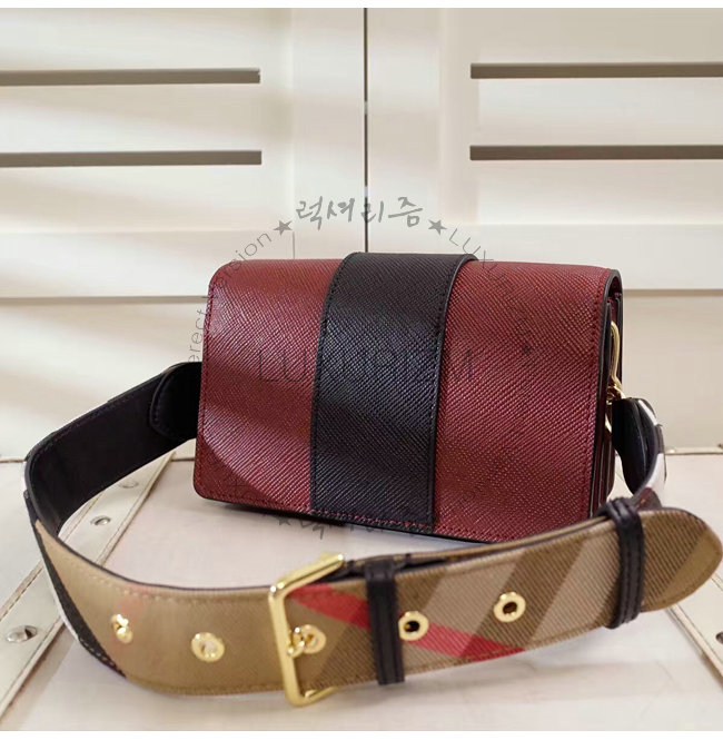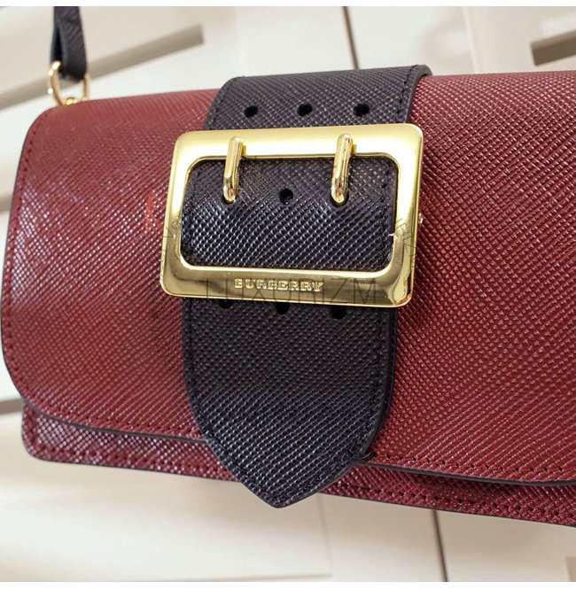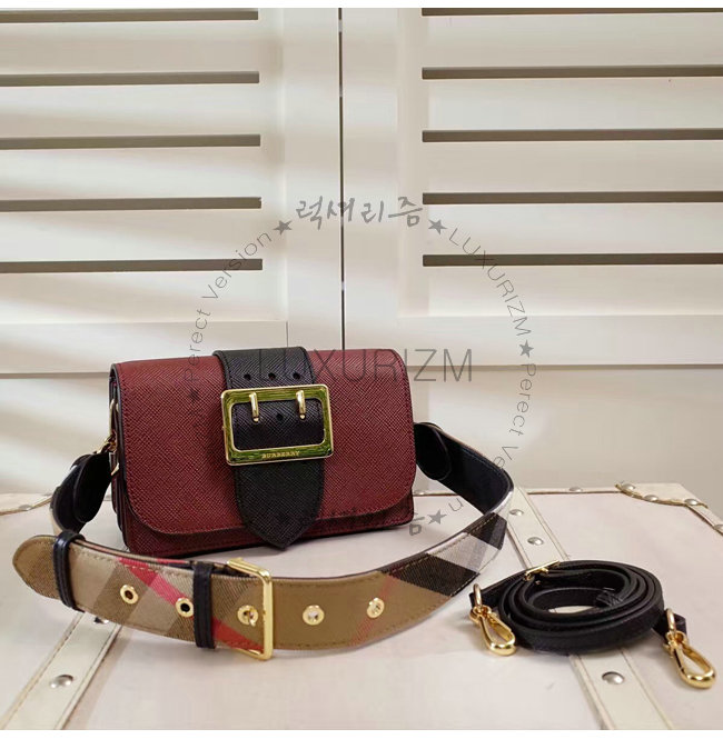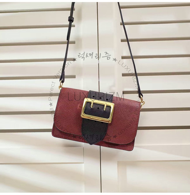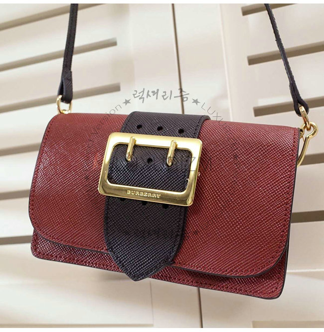 BURBERRY-40224471 버버리 텍스처드 가죽 버클 백 버건디/블랙