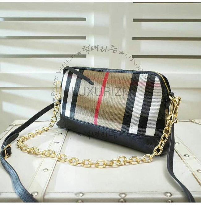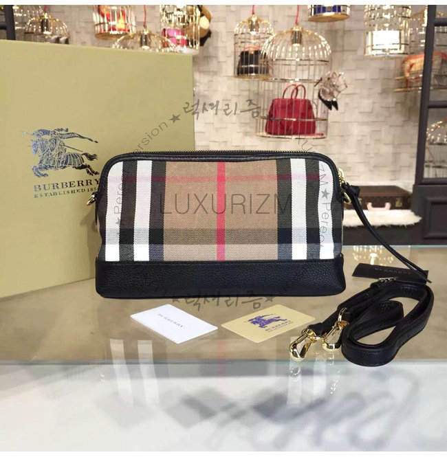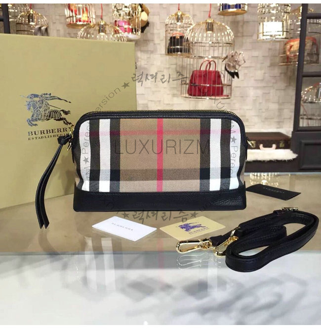 BURBERRY-40147411 버버리 하우스 체크 가죽 클러치백 블랙