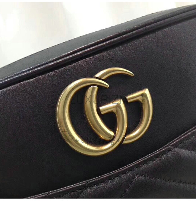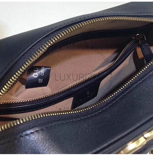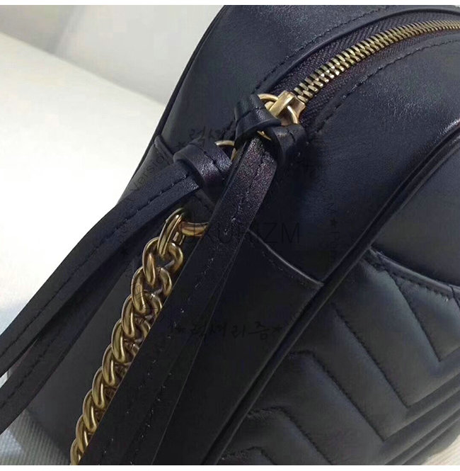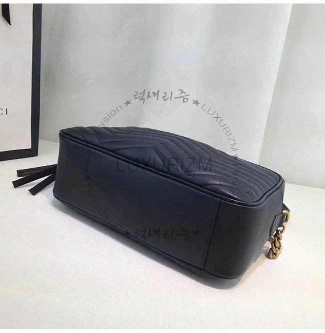 -2016가을 겨울 컬렉션/블랙 마틀라세 쉐브론 가죽 및 뒷면에 GG 장식/앤틱 골드 톤 메탈디테일.