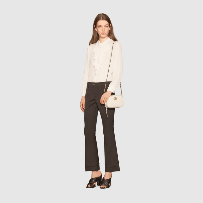 뒷면에 쉐브론 디자인 및 GG 모티브가 장식된 마틀라세 가죽으로 제작.
