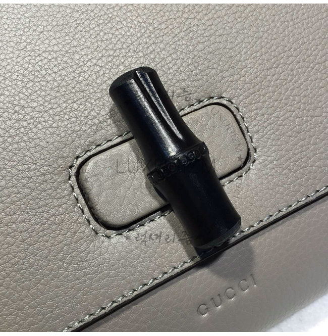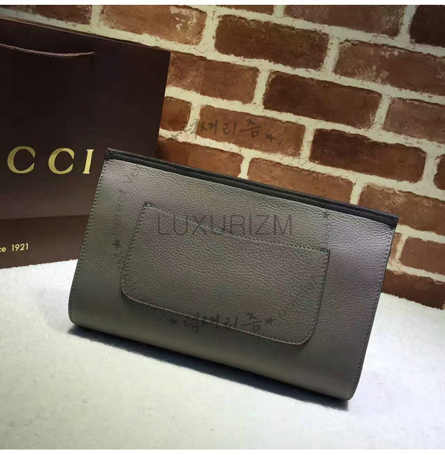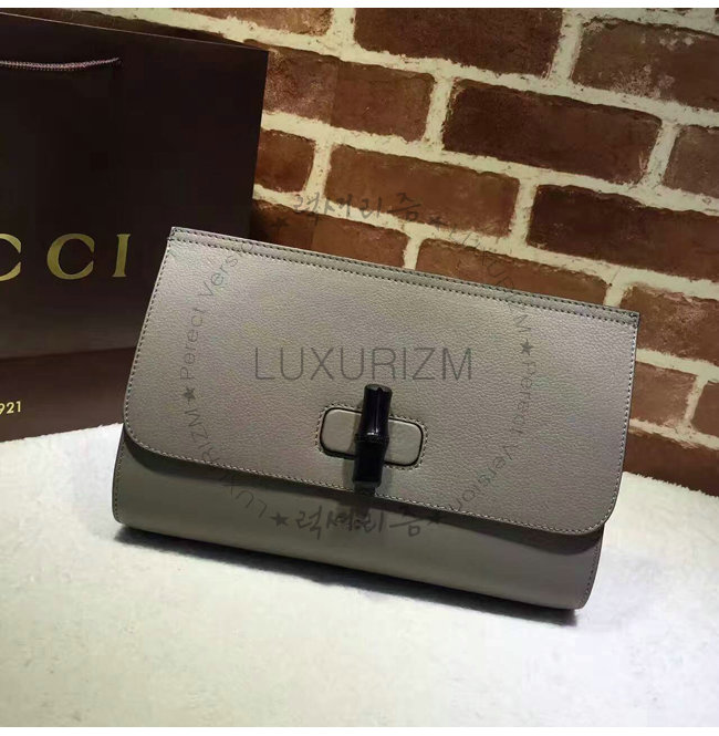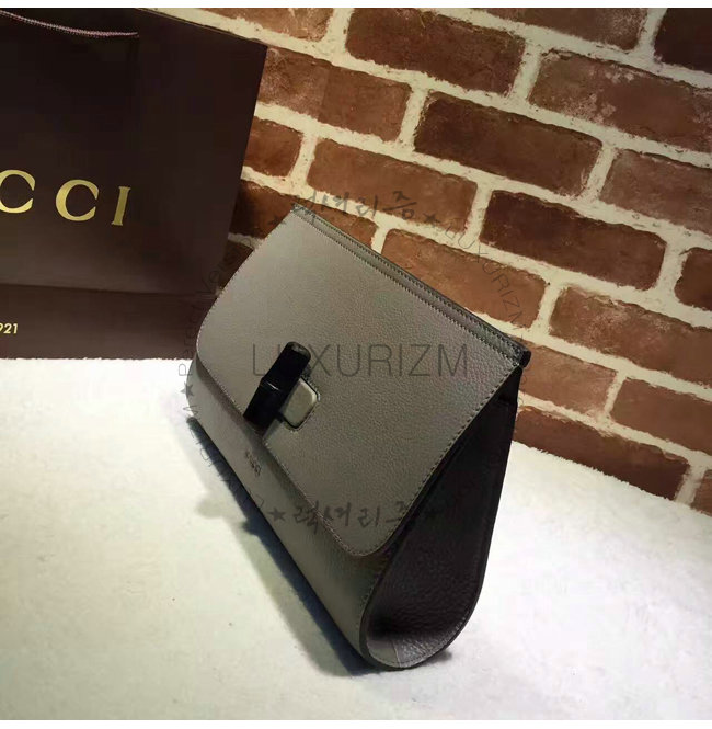 GUCCI-387220 1419 구찌 Bamboo Daily 가죽 클러치 라이트 그레이