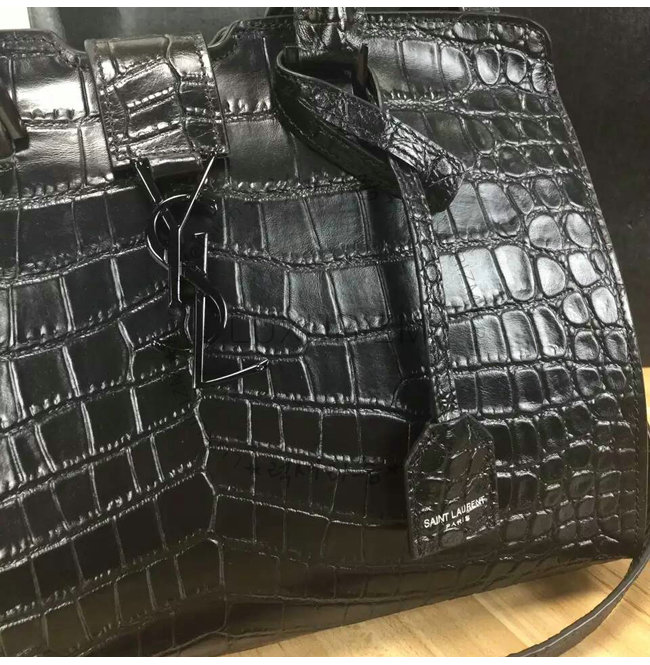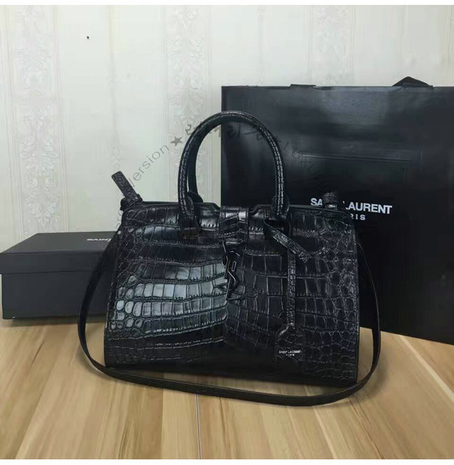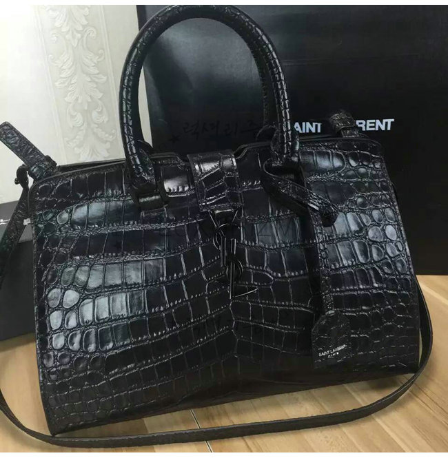 [스페셜오더]SAINT LAURENT-394461 생 로랑 크로커다일 무늬 블랙 스몰 모노그램 생 로랑 카바 백