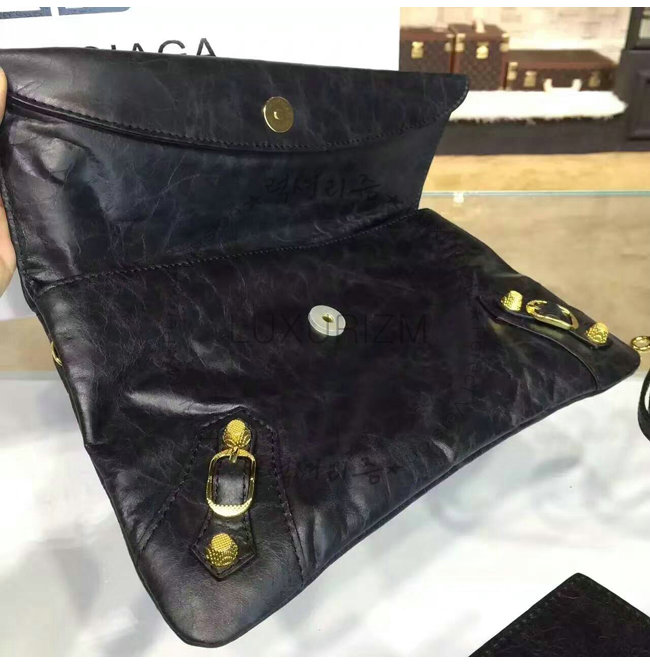 [스폐셜오더]BALENCIAGA-11588 발렌시아가 자이언츠 12 골드 엔벨로프 스트랩 클러치 블랙