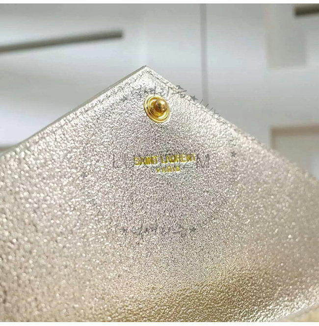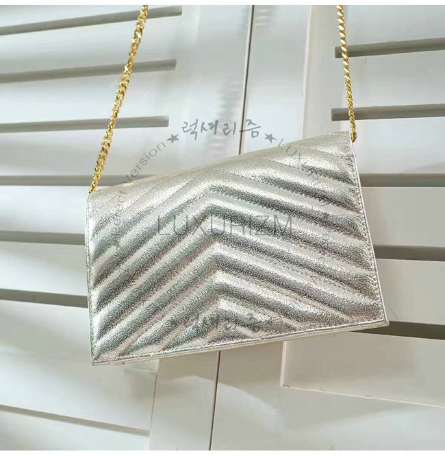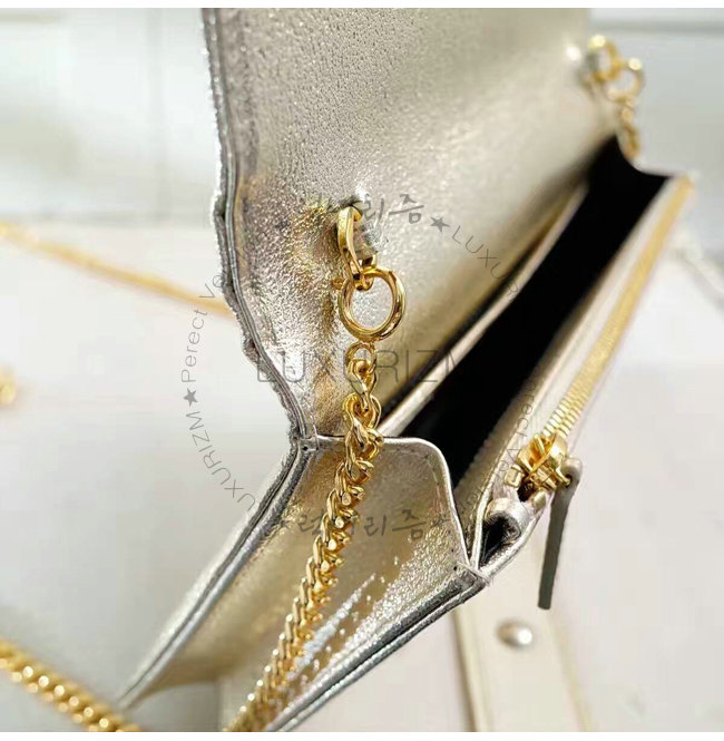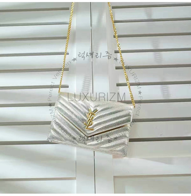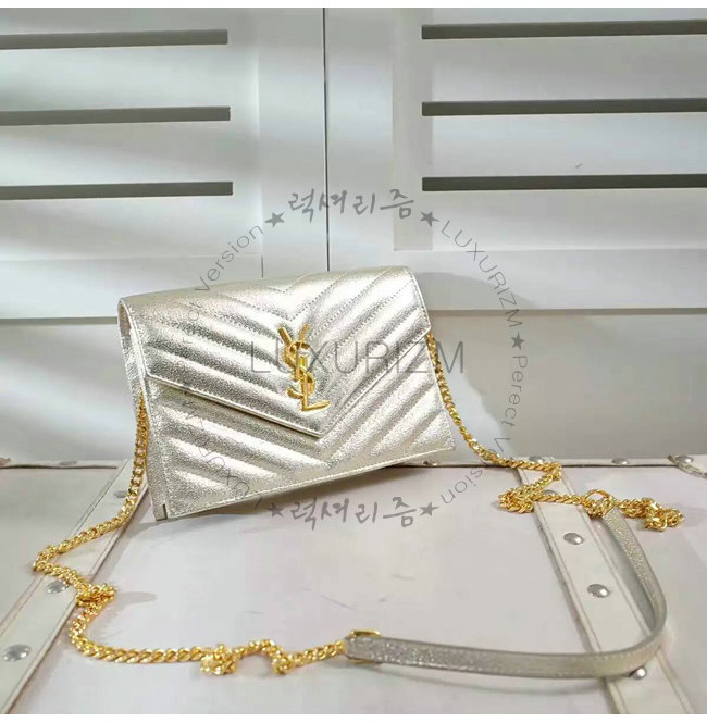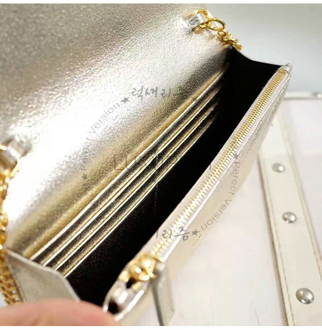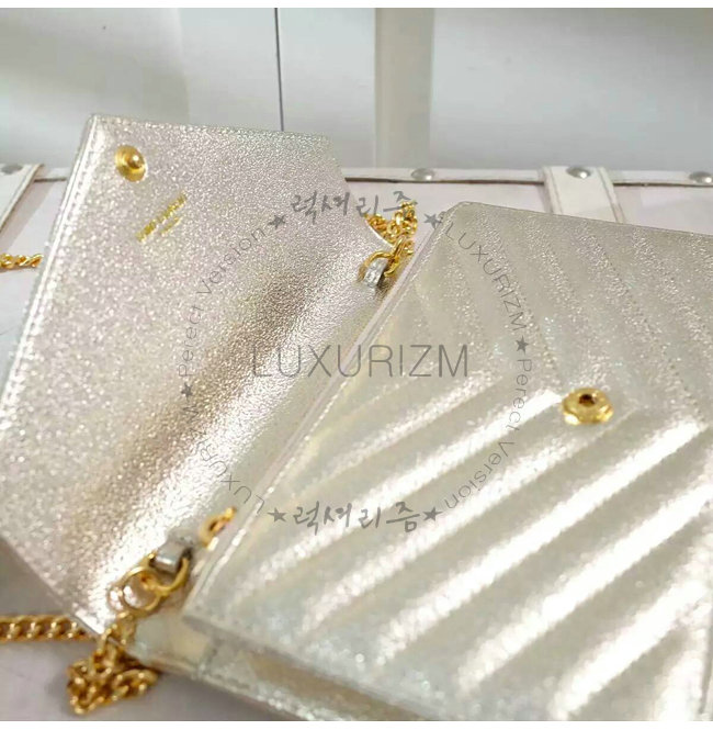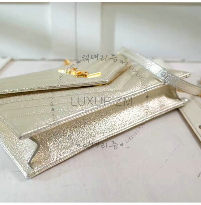 [스페셜오더]SAINT LAURENT-3953B 생로랑 페일 골드 메탈릭 인터로킹 YSL 금장 클래식 플랩 프론트 엔벨로프 체인 월릿