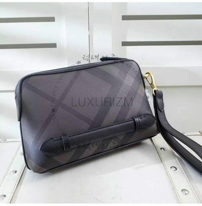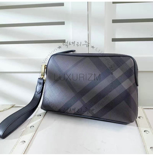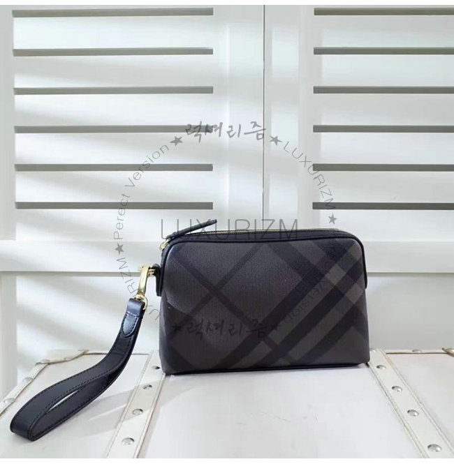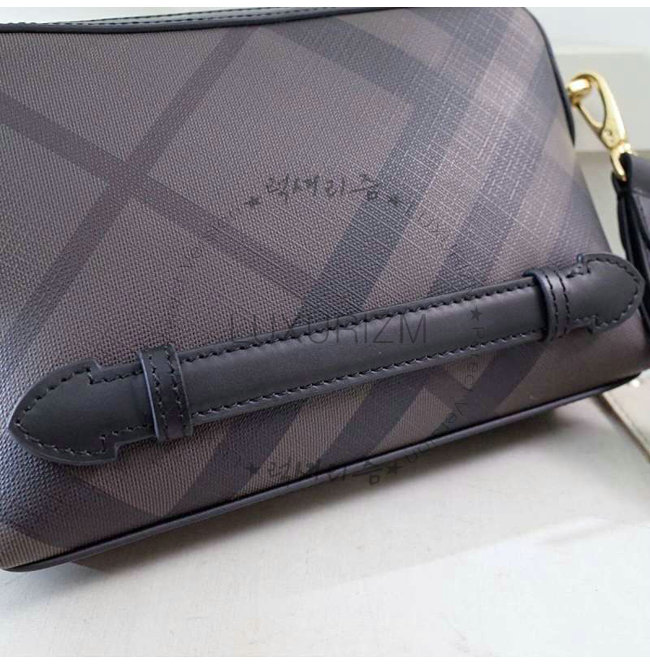 BURBERRY-64552 버버리 가죽 트리밍 런던 체크 파우치 초콜릿/블랙