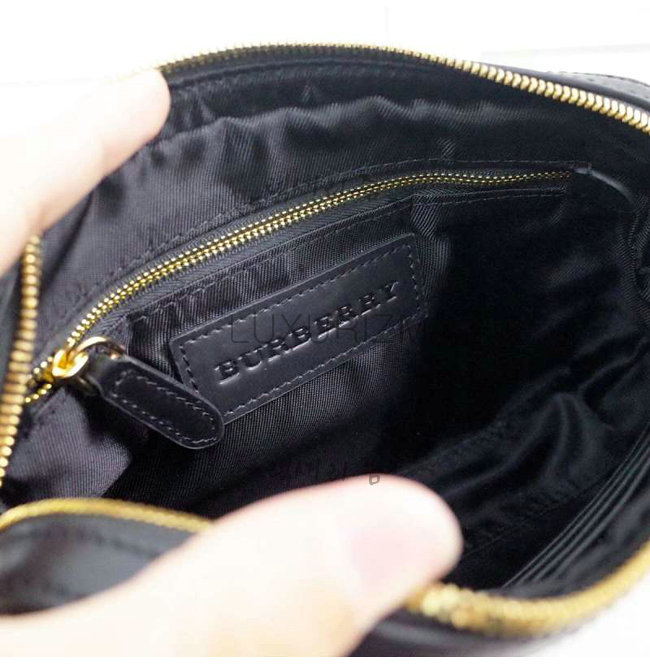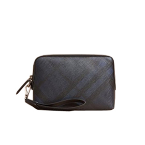 BURBERRY-64552 버버리 가죽 트리밍 런던 체크 파우치 네이비/블랙
