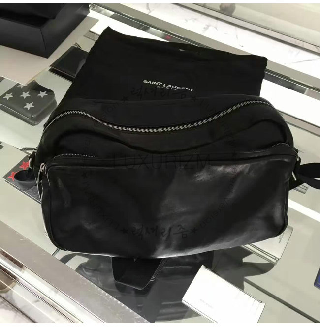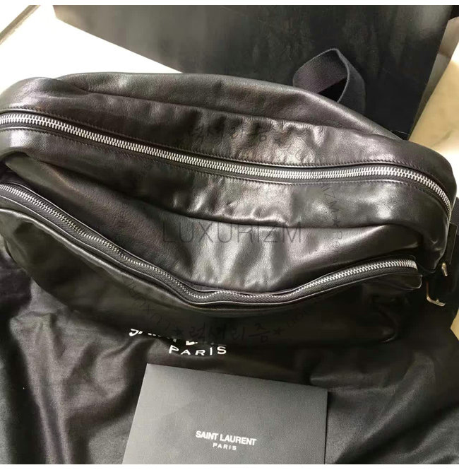 #스폐셜오더 SAINT LAURENT-생 로랑 블랙 워시드 가죽 델라베 지퍼 남녀공용 카메라 백