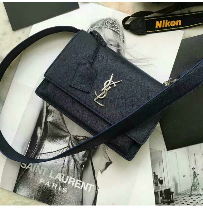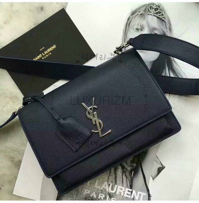 #홍콩명품 스페셜오더 완벽재현 SAINT LAURENT-생 로랑 네이비 블루 블랙 그레인드 가죽 미디엄 선셋 모노그램 생로랑 사첼백.