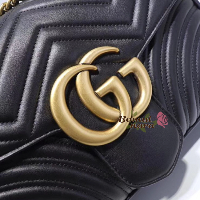 #홍콩이미테이션 1대1 완벽재현 스페셜오더GUCCI-443499 1000 구찌 GG 마몽 마틀라세 미디엄 블랙 스트럭처드 체인 숄더백by럭셔리즘.