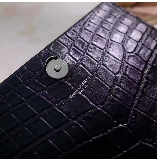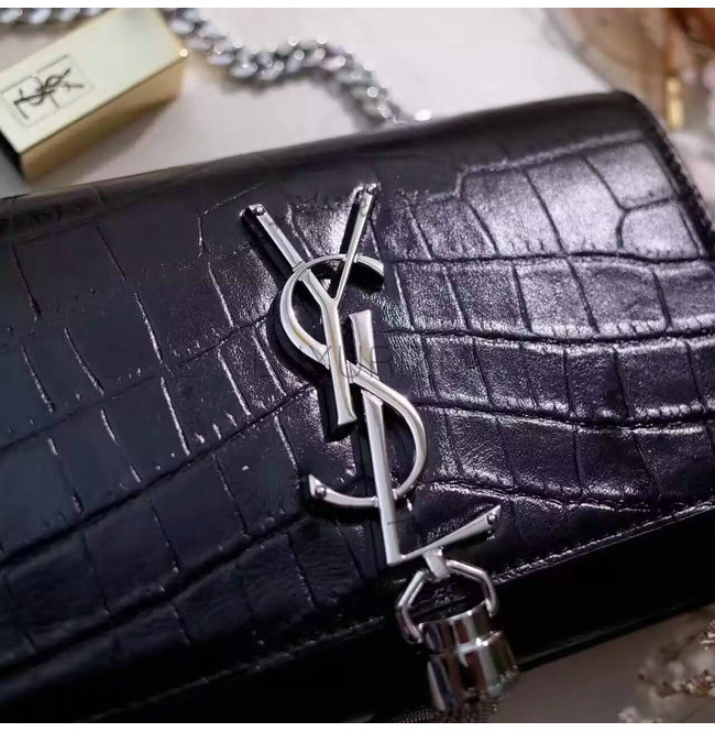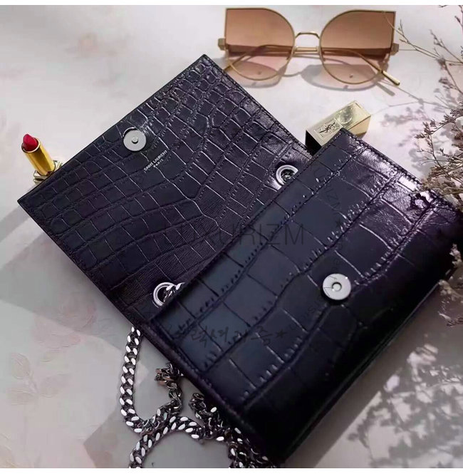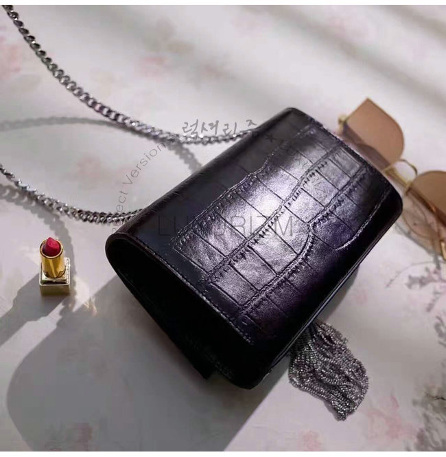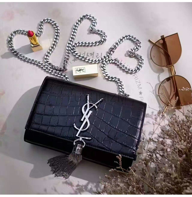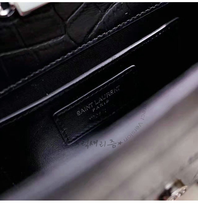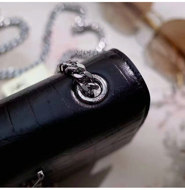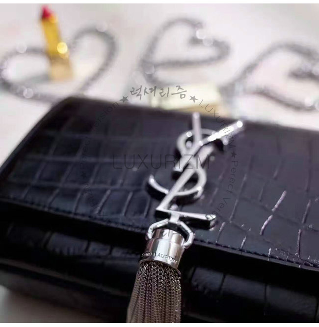 #홍콩명품 럭셔리즘 스페셜오더SAINT LAURENT-생 로랑 블랙 은장 크로커다일 무늬 가죽 클래식 스몰 모노그램 생 로랑 테슬 사첼백.