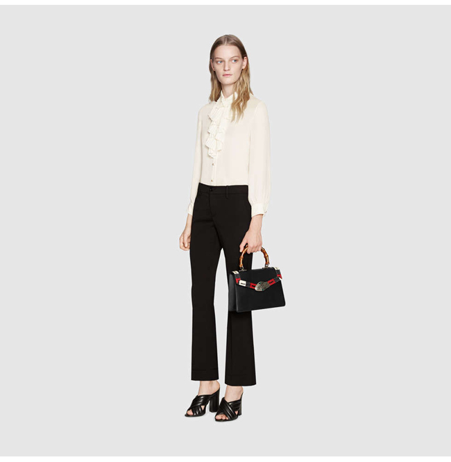 구찌 릴리트 스몰 사이즈 가죽 탑 핸들 백. 플랩을 따라 돋보이는 스네이크 스킨 프린트