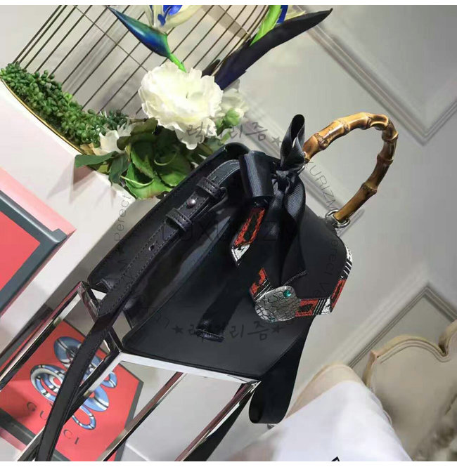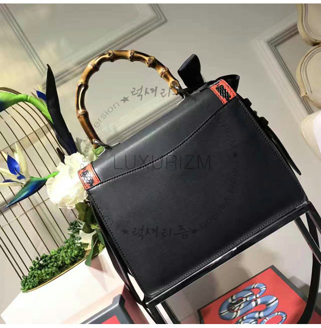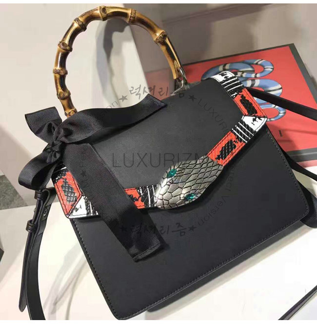 텍스처드 스네이크 헤드. 뱀부 탑 핸들 블랙 그로그랭 보우디테일.부드러운 가죽으로 제작.