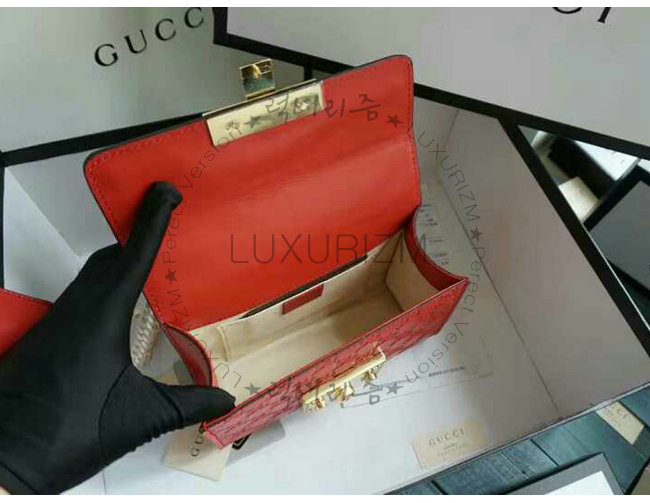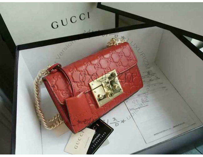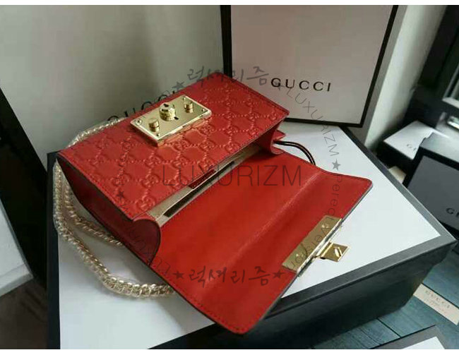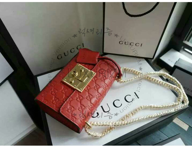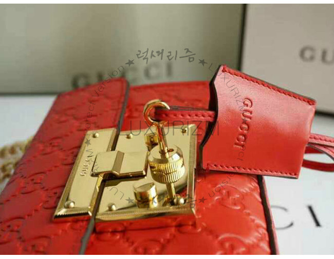 #홍콩 이미테이션 레플리카 쇼핑몰 스페셜오더GUCCI-409487 6433구찌[Padlock]패드락 레드 시그니처 스몰 숄더백.