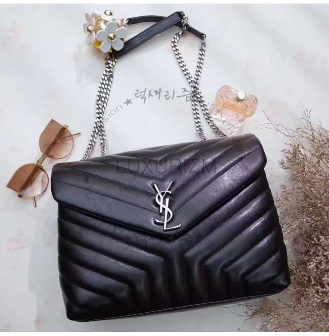 #럭셔리즘 생로랑 레플리카 스페셜오더 생로랑 블랙 은장 클래식 미디엄 모노그램 생 로랑 엔벨로프 사첼 백.