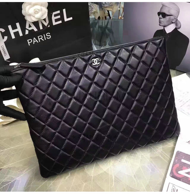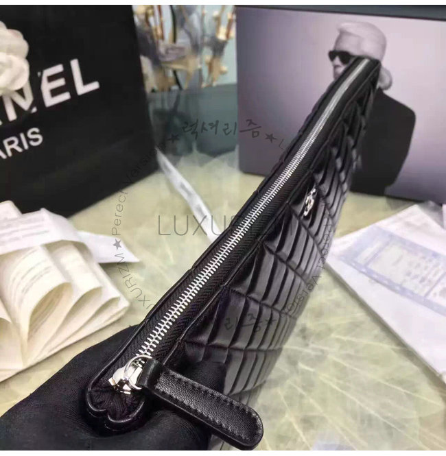 [스페셜오더]CHANEL-A82552 샤넬 은장 램스킨 퀄팅 블랙 클러치 케이스(구하라 클러치)