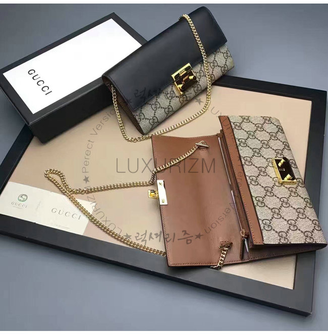 #구찌레플리카 지갑 쇼핑몰 홍콩 럭셔리즘GUCCI-453506 8575구찌 패드락 GG 수프림 캔버스 체인 스트랩 지갑.