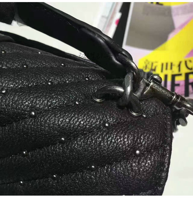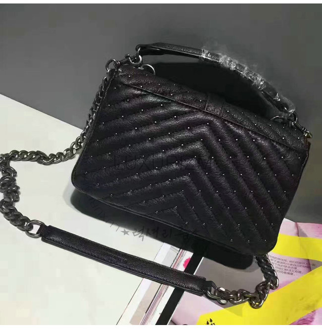 [스페셜오더]SAINT LAURENT-428056 생 로랑 브러시드 실버-톤 메탈 블랙 마틀라세 가죽 클래식 미디엄 모노그램 생 로랑 컬리지 스터디드 백