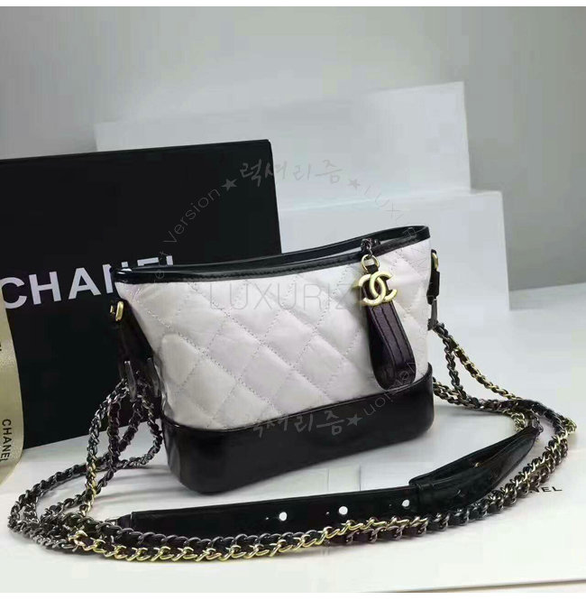[스페셜오더]CHANEL-A91810 샤넬 빈티지 카프스킨 가브리엘 호보백 스몰 블랙 화이트