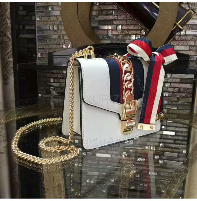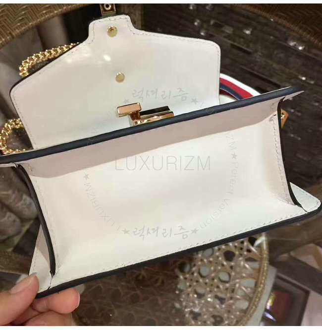 [스페셜오더]GUCCI-431666 8605 구찌 Sylvie 가죽 나일론 web 리본 장식 미니 체인백 화이트