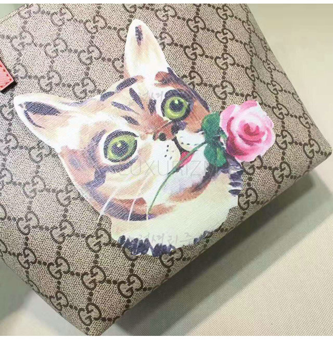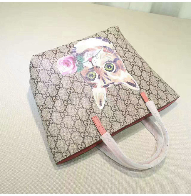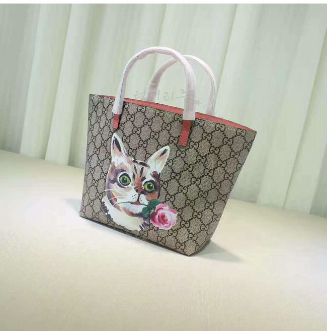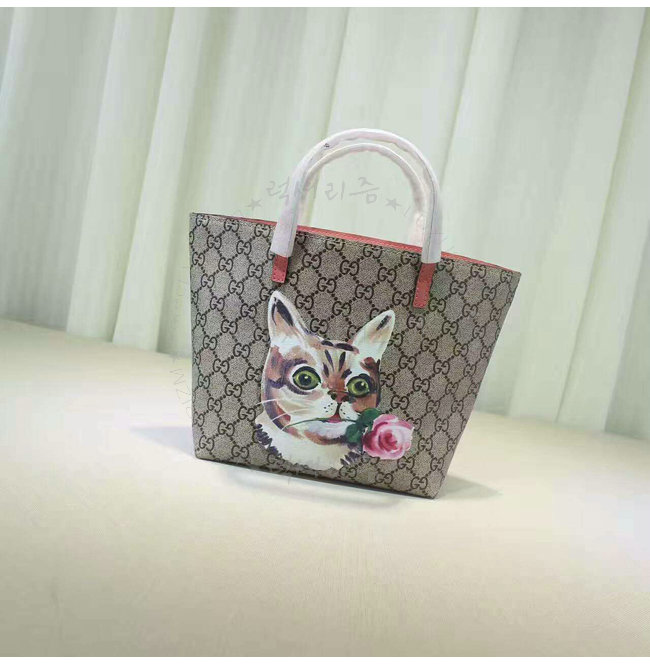 GUCCI-410812 8594 구찌 칠드런 GG수프림 캔버스 고양이 프린트 토트 백 핑크