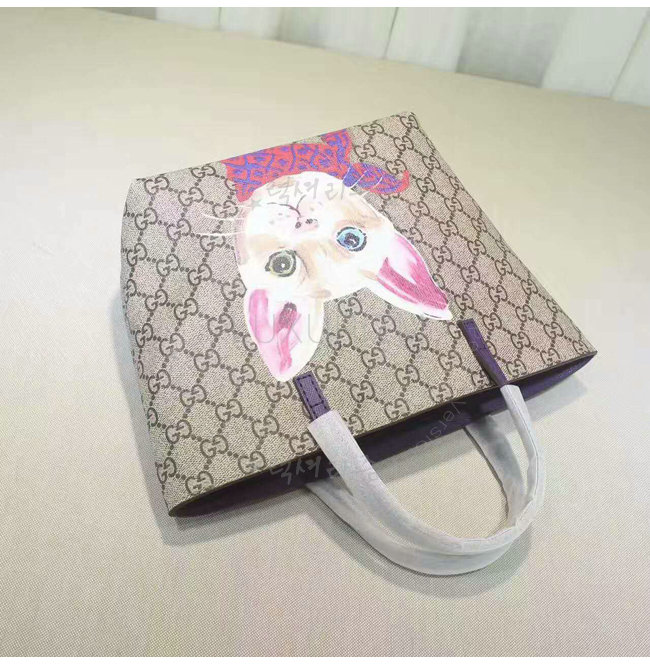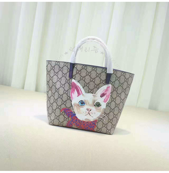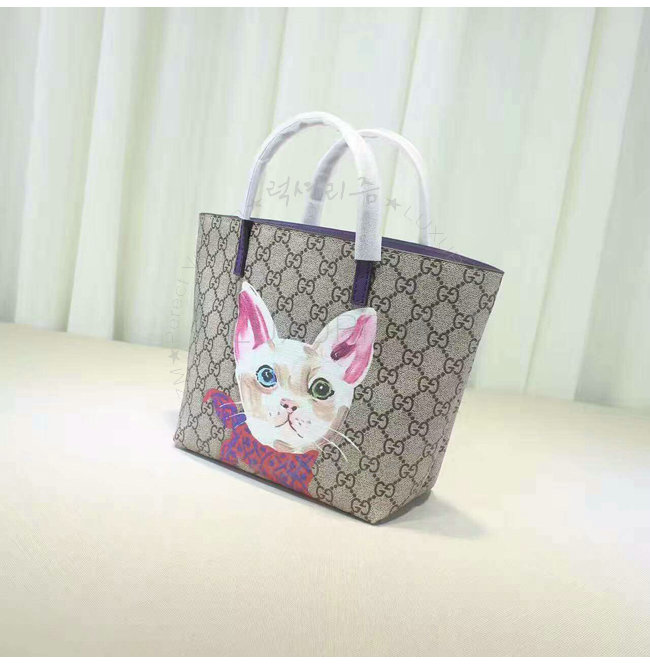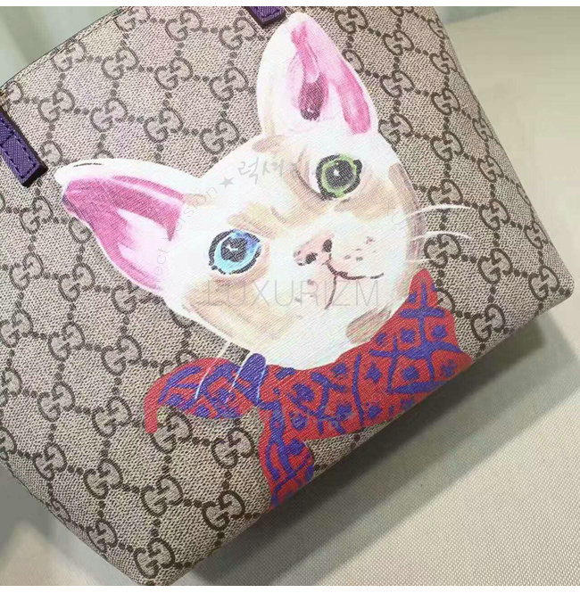 GUCCI-410812 8595 구찌 칠드런 GG수프림 캔버스 고양이 프린트 토트 백 퍼플