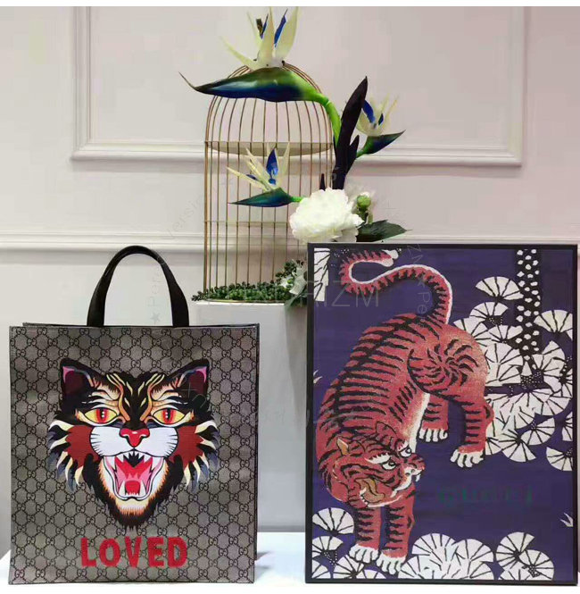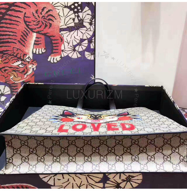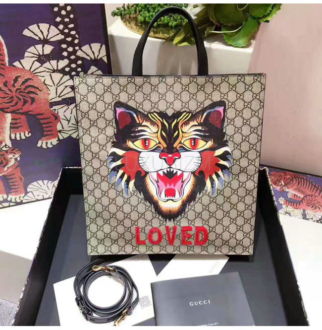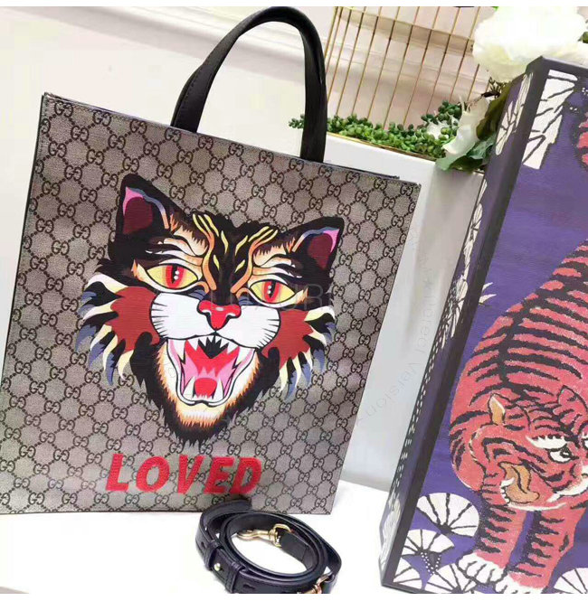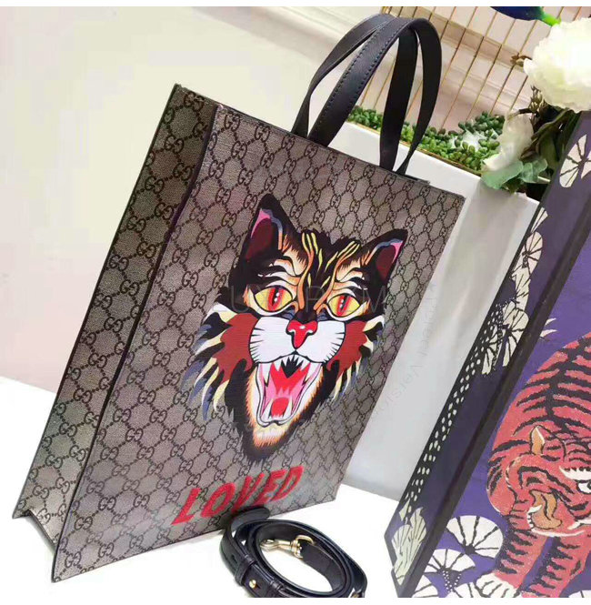 [스페셜오더]GUCCI-450950 8652 구찌 앵그리 캣 프린트 GG 수프림 캔버스 토트 백