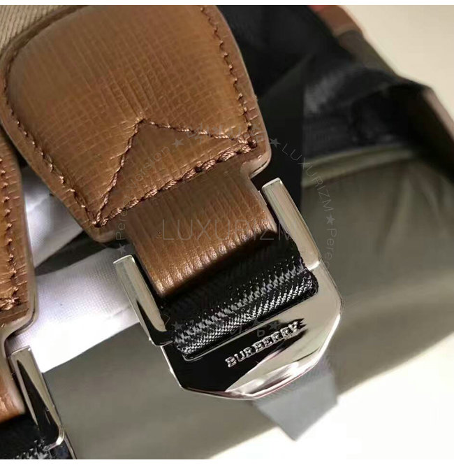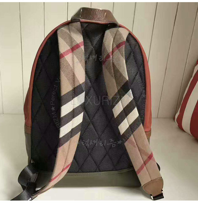 [스페셜오더]BURBERRY-40396591 버버리 가죽 하우스 체크 트리밍 테크니컬 백팩 딥 토프 브라운