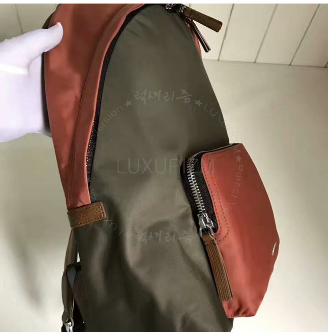 가죽 트리밍이 돋보이는 디자인으로 다수의 주머니와 보호 기능의 뒤판 퀼팅 패널이
