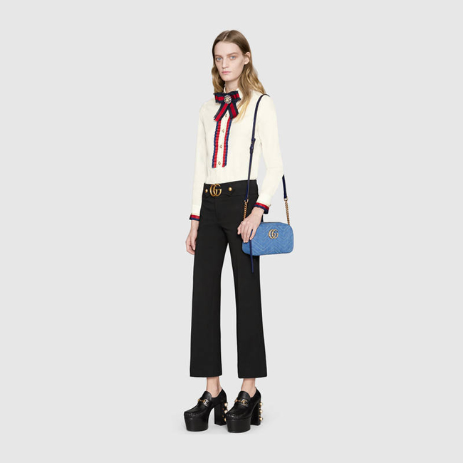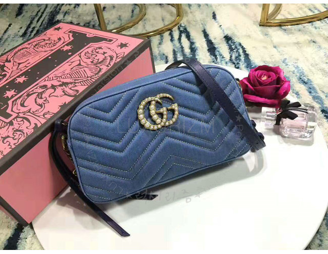 [스페셜오더]GUCCI-447632 4338 구찌 GG Marmont 라이트 블루 스몰 소프트 스트럭처드 체인 숄더백