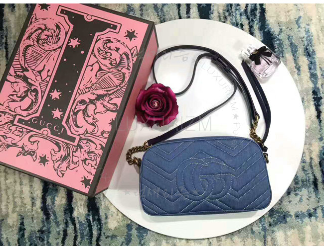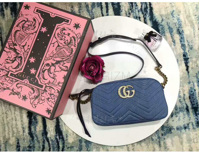 [스페셜오더]GUCCI-447632 4381 구찌 GG Marmont 마몽 한정판 데님 체인 숄더백