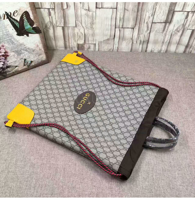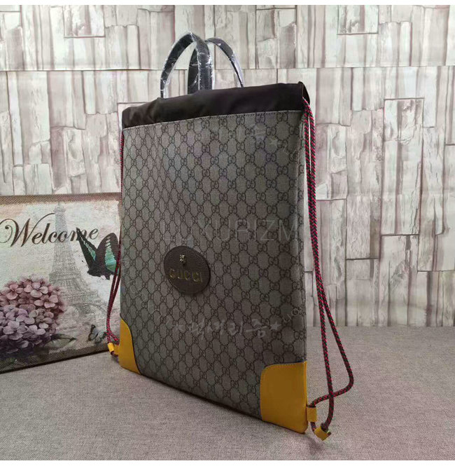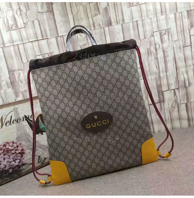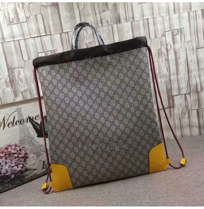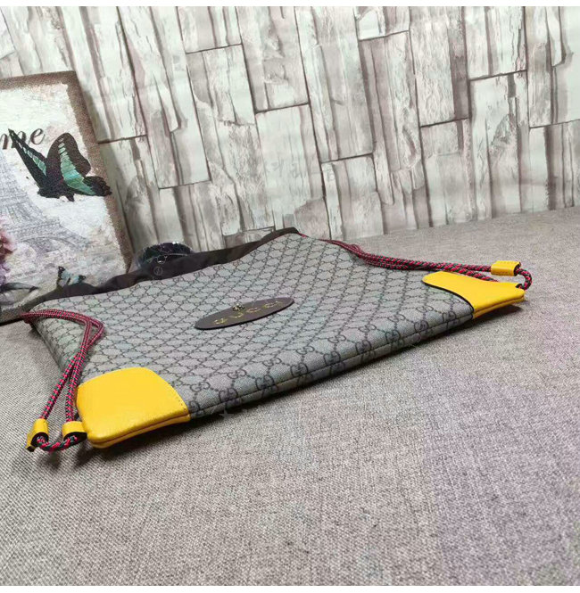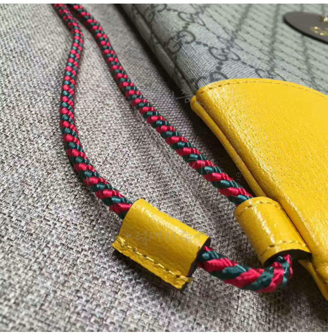 소프트 GG 수프림 드로우스트링 백팩. 옐로우 가죽 트리밍 컨트래스트 트리밍은 과거 구찌의
