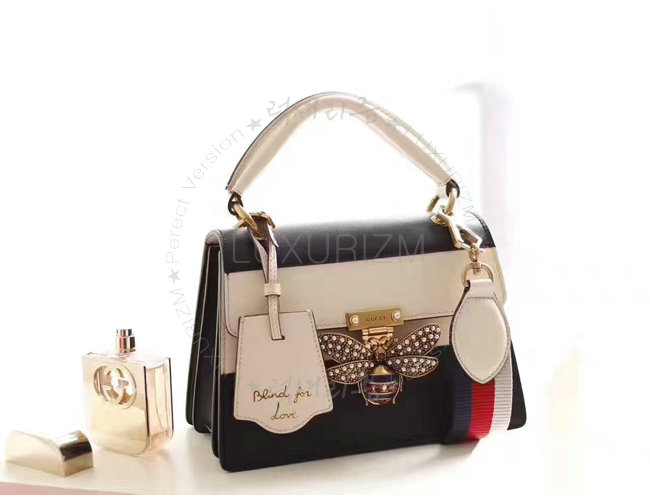 [스페셜오더]GUCCI-476541 8055 구찌 Queen Margaret 가죽 탑 핸들 백 블랙 화이트