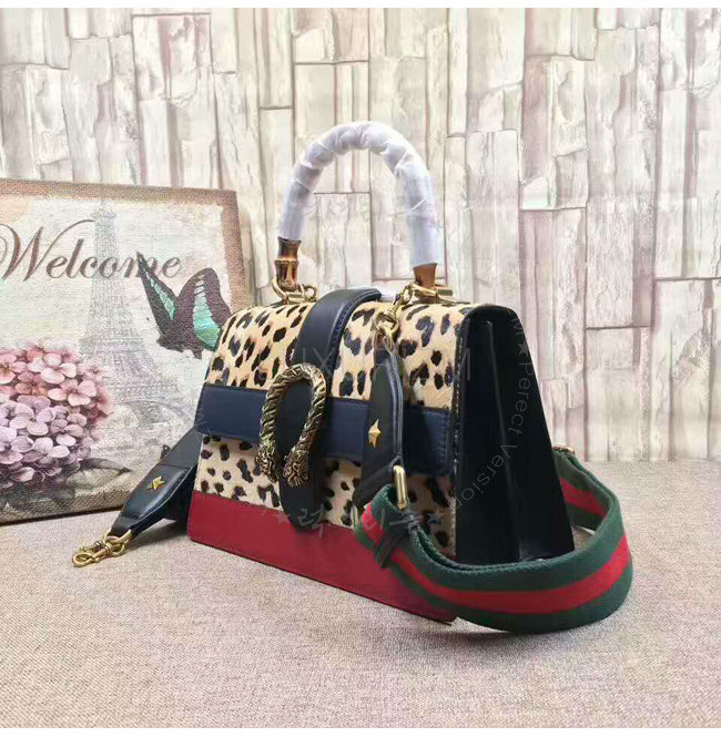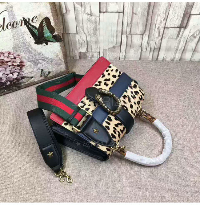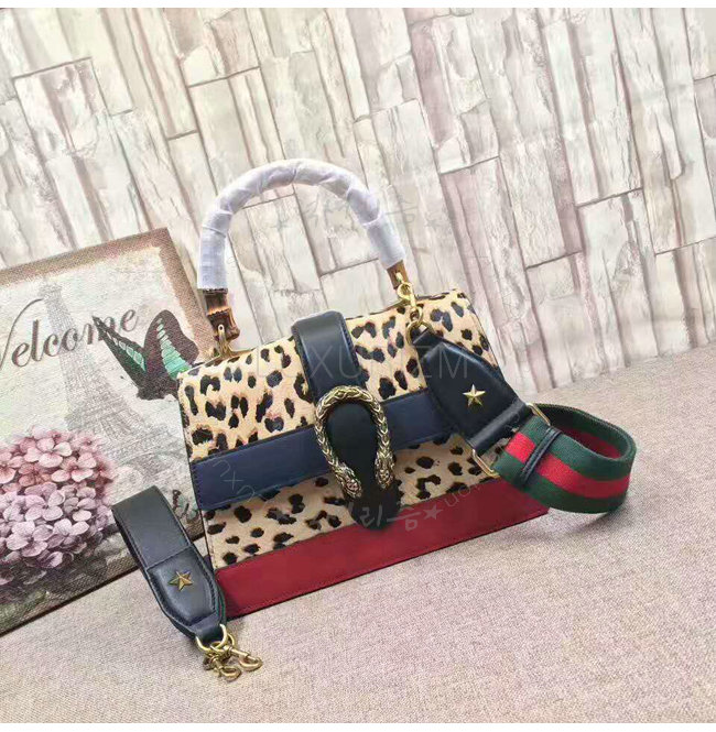 [스페셜오더]GUCCI-448075 8024 구찌 Dionysus 호피 무늬 프린트 가죽 미디엄 밤부 탑 핸들 백
