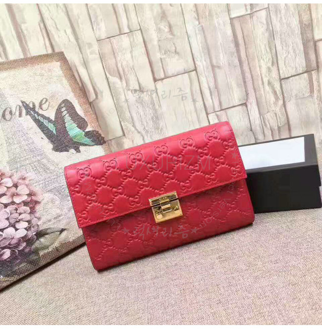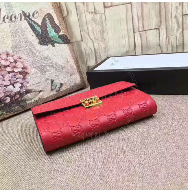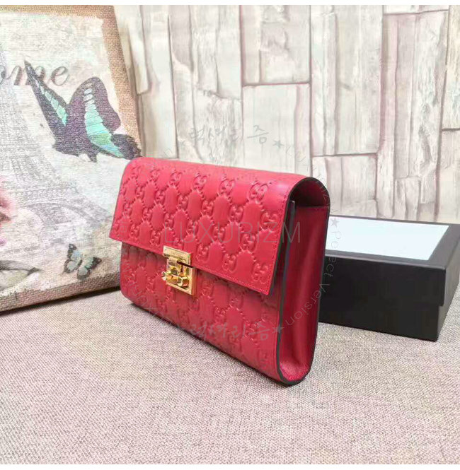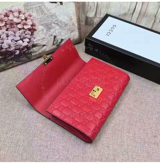 [스페셜오더]GUCCI-453156 6433 구찌 레드 시그니처 가죽 패드락 파우치