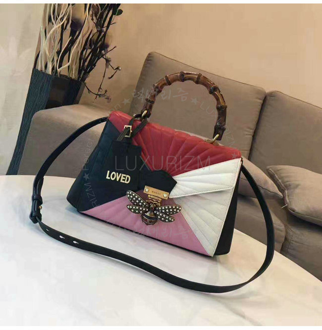 [스페셜오더]GUCCI-476531 8350 구찌 Queen Margaret 블랙 화이트 퀼트 가죽 탑 핸들 백 가격 : 520,000원