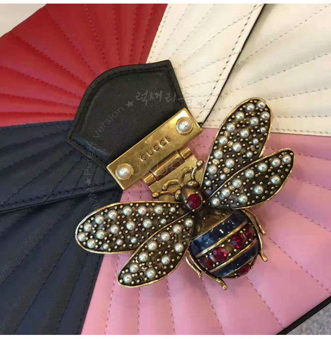 [스페셜오더]GUCCI-476531 4197 구찌 Queen Margaret 블루 레드 퀼트 가죽 탑 핸들 백