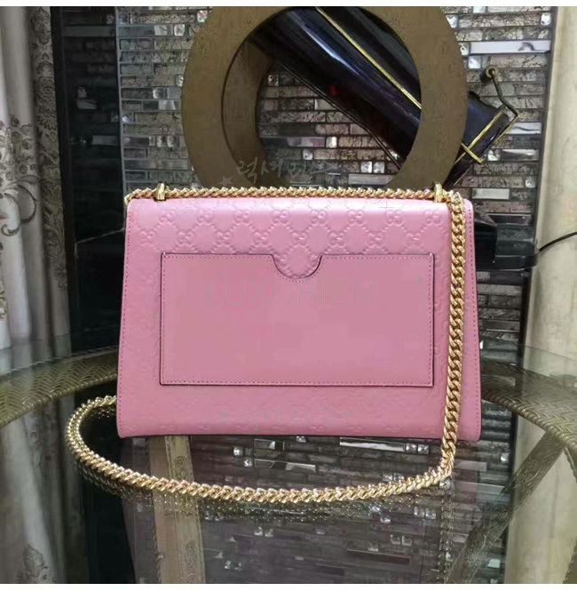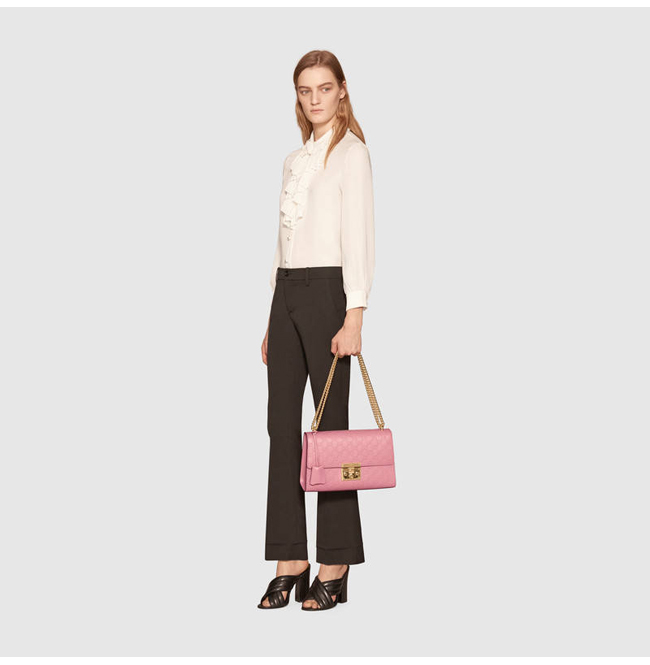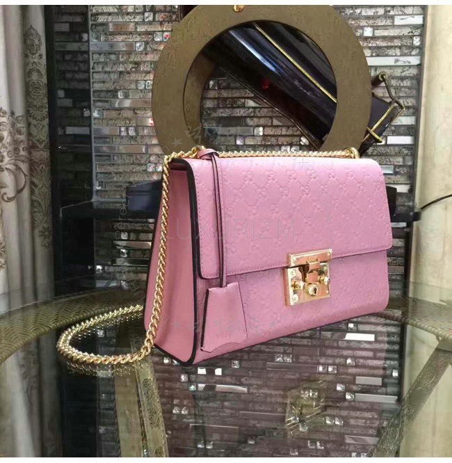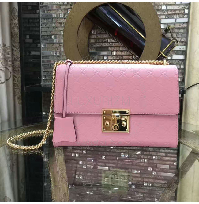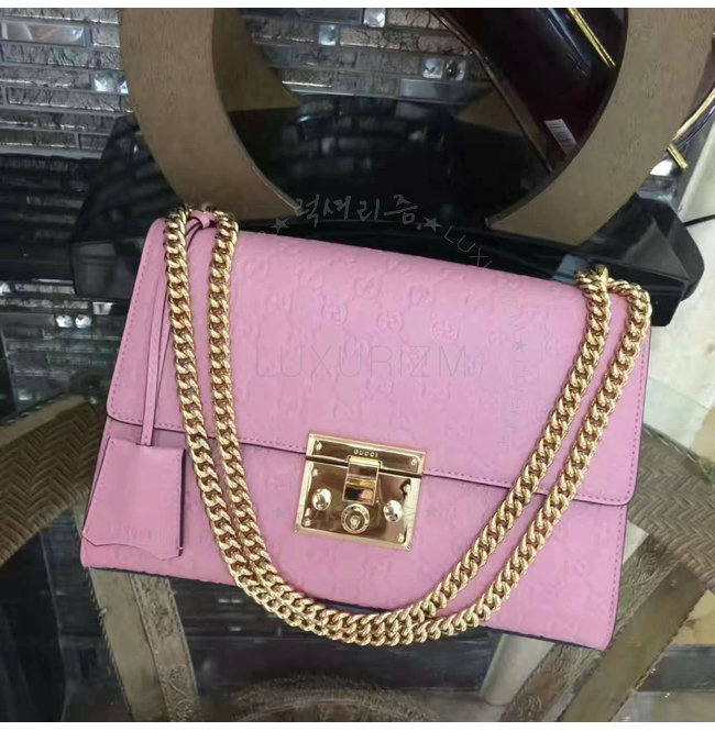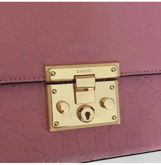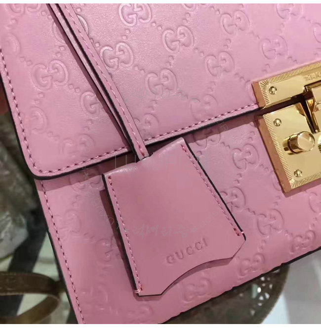 [스페셜오더]GUCCI-409486 5812 구찌 패드락 Gucci 시그니처 가죽 숄더백 핑크