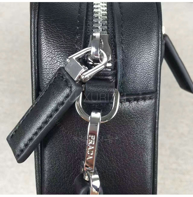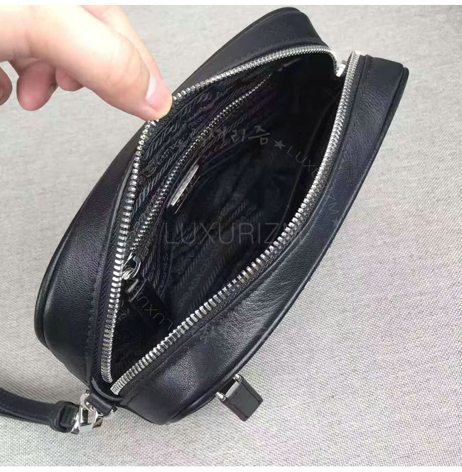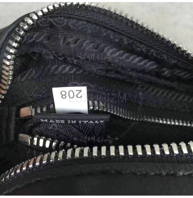 지퍼식 외부포켓 1개 Prada로고 라이닝 내부에 태그 로고 외부에 메탈 로고.