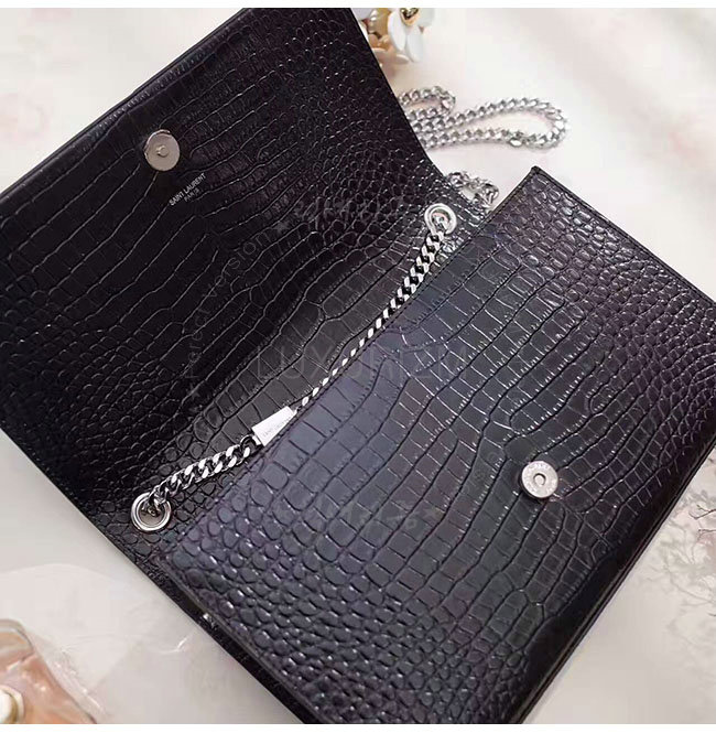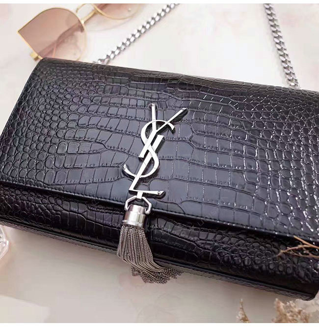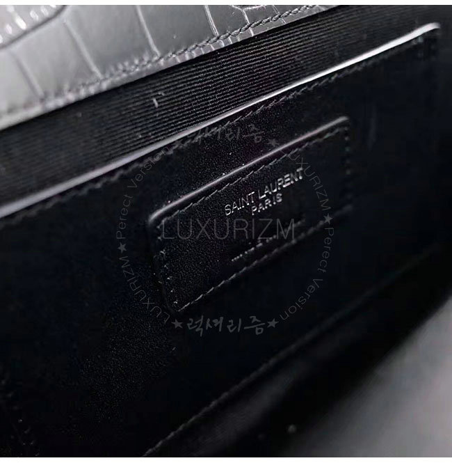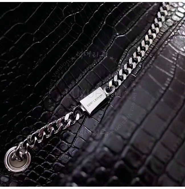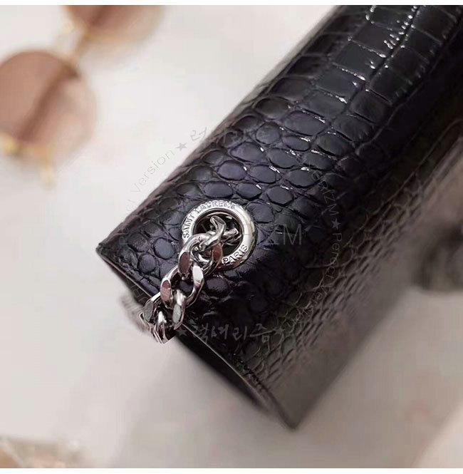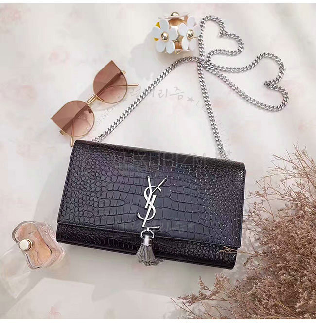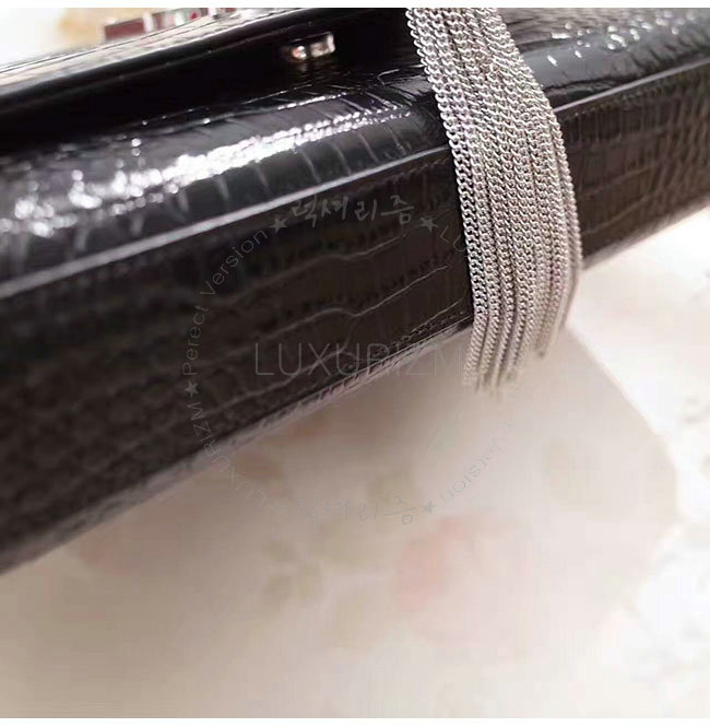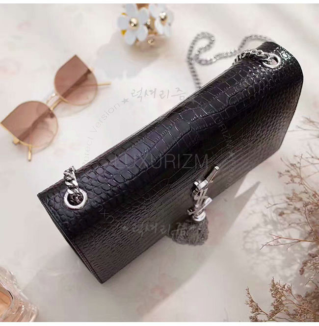 [스페셜오더]SAINT LAURENT-354119 생 로랑 블랙 은장 크로커다일 무늬 샤이니 가죽 클래식 미디엄 케이트 모노그램 생 로랑 태슬 사첼 백