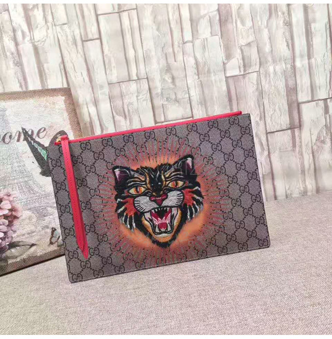 [스페셜오더]GUCCI-476411 8313 구찌 GG 수프림 캔버스 앵그리 캣 프린트 파우치